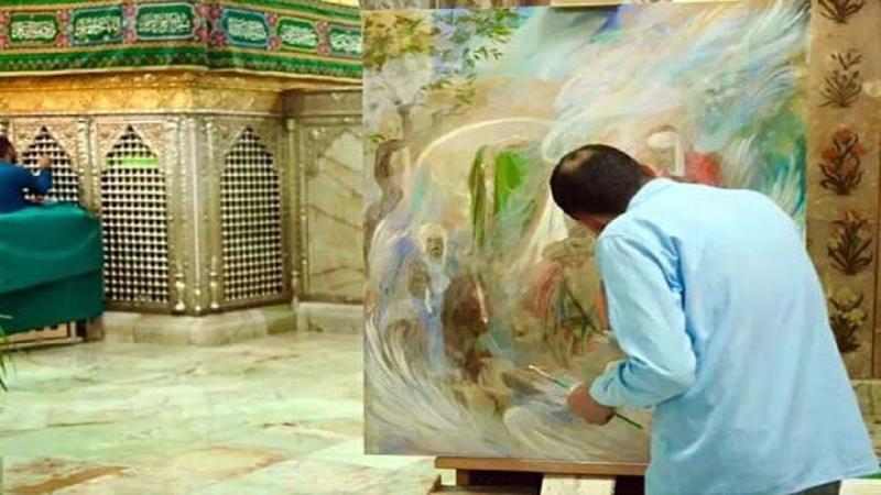 «حسن روحالامین»، نقاشی صحنهی ورود حضرت معصومه (سلاماللهعلیها) به قم را در حرم مطهر ایشان ترسیم کرد. بنابراین گزارش، این تابلوی نقاشی روز ۳ آبان ماه به مناسبت ورود حضرت فاطمه معصومه (سلاماللهعلیها) به قم رونمایی خواهد شد. «حجتالاسلام محسن آمره»؛ مدیر روابط عمومی و تبلیغات آستان مقدس بانوی کرامت گفت: تولید این اثر هنری با همکاری حرم مطهر حضرت معصومه (سلاماللهعلیها) با هیأت هنری جامعهی ایمانی مشعر در روز ۲۵ مهرماه ۱۴۰۰ در رواق شاه عباسی حرم مطهر بانوی کرامت انجام شده است. وی خاطرنشان کرد: تولید این اثر بنا به خواسته و علاقهی خود استاد روحالامینی بوده و حرم مطهر نیز از این کار هنری استقبال و امکان حضور در حرم مطهر و اجرای نقاشی در حرم مطهر را فراهم کرده است.