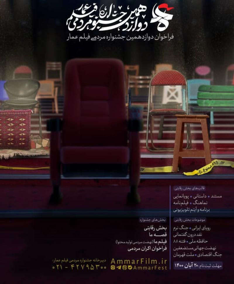 دوازدهمین جشنوارهی فیلم عمار در بخشهای رقابتی، قصهی ما، فیلم ما (نهضت مردمی تولید محتوا) و فراخوان نمایش مردمی برگزار میشود.