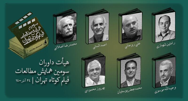 بهگزارش ستاد خبری سومین همایش مطالعات فیلم کوتاه تهران، با اتمام مهلت ارسال مقالات کامل به دبیرخانه این رویداد، اسامی هیئت داوران آن اعلام شد. محمدرضا اصلانی، احمد الستی، محمدجعفر یوسفیان، سیدعلی روحانی، بهروز محمودی بختیاری، رامتین شهبازی و وحیدالله موسوی، ۷ عضو هیأت داوران این رویداد علمی- پژوهشی بوده که بررسی و خوانش مقالات کامل رسیده به سومین همایش مطالعات فیلم کوتاه تهران را آغاز کردهاند.