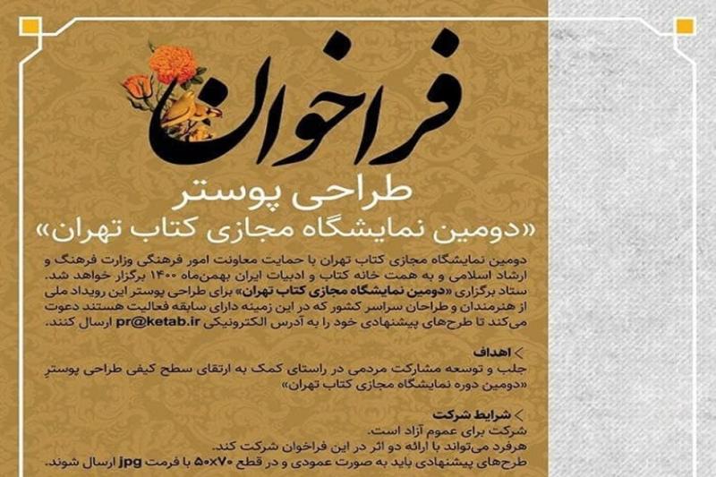 طبق اعلام روابطعمومی خانه کتاب و ادبیات ایران، ستاد برگزاری «دومین نمایشگاه مجازی کتاب تهران» فراخوان طراحی پوستر برای این رویداد ملی را منتشر کرد؛ این فراخوان با هدف جلب و توسعه مشارکت مردمی در راستای کمک به ارتقای سطح کیفی طراحی پوسترِ «دومین دوره نمایشگاه مجازی کتاب تهران» منتشر شده و از هنرمندان و طراحان سراسر کشور که در این زمینه دارای سابقه فعالیت هستند، دعوت به عمل میآورد.