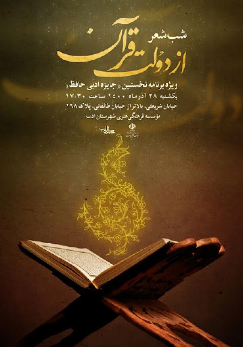 این برنامه با حضور برخی از شاعران مطرح و جوان کشور روز یکشنبه ۲۸ آذرماه ساعت ۱۷:۳۰ در محل این مؤسسه به نشانی خیابان شریعتی، بالاتر از خیابان طالقانی، پلاک ۱۶۸ برگزار میشود. این شب شعر یکی از ویژه برنامههای «جایزهی ادبی حافظ» (جشنوارهی ملی شعر قرآنی) است که با هدف یاری به تولید ادبیات قرآنی برگزار میشود.