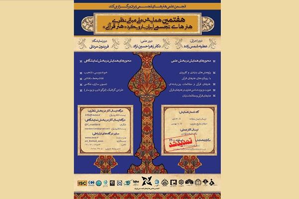 بر اساس تصمیم کمیته اجرایی هفتمین همایش ملی مبانی نظری هنرهای تجسمی ایران با رویکرد «هنر قرآنی»، مهلت ارسال مقالات به دبیرخانه همایش، تا سیام دیماه سال جاری تمدید شد.