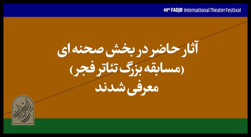 اسامی آثار پذیرفتهشده برای شرکت در بخش رقابتی چهلمین جشنواره تئاتر فجر بر اساس حروف الفبا به شرح زیر است: