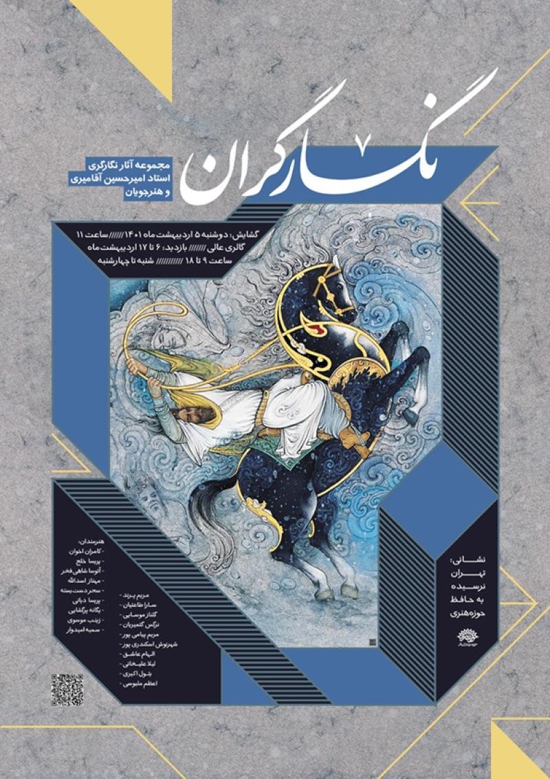 «امیرحسین آقامیری»؛ درباره نمایشگاه «نگارگران» میگوید: نگارگری یک هنر ایرانی اسلامی و بر مبنای عرفان ایرانی و شعایر دینی ماست و غالب آثار این نمایشگاه نیز بر پایه همین مضامین انتخاب شدهاند.