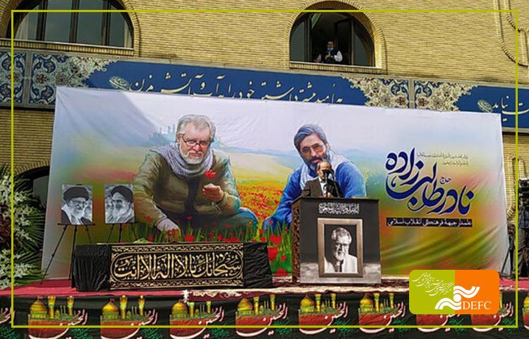 خراسانی در ادامه از حاج صادق آهنگران دعوت کرد تا به جایگاه بیاید و زیارت عاشورا بخواند. در پایان این مراسم با امامت حجتالاسلام قائم مقامی بر پیکر زنده یاد طالبزاده نماز میت خوانده شد. پیکر زندهیاد نادر طالبزاده در پایان این مراسم با ذکر «یا حسین» و همراه با مارش نظامی به سمت بهشت زهرا و برای خاکسپاری در جوار مزار شهید سیدمرتضی آوینی بدرقه شد.