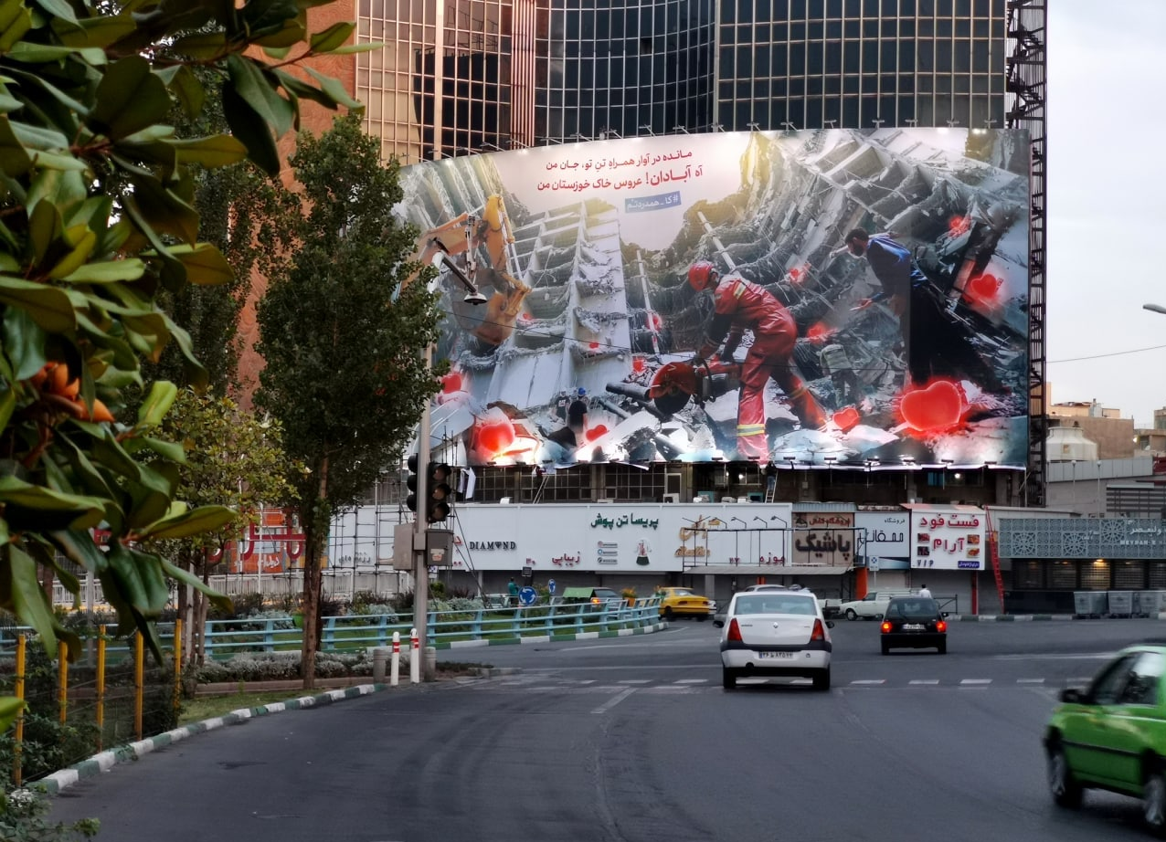 جدیدترین دیوارنگارهی میدان ولیعصر (عجلاللهتعالیفرجهالشریف) به حادثهی فروریختن ساختمان تجاری متروپل در آبادان مرتبط است که تا روز گذشته 29 جانباخته بر جای گذاشته است. هیئت دولت به احترام جانباختگان حادثهی ریزش ساختمان متروپل آبادان، امروز ۸ خرداد را عزای عمومی اعلام کرد. در این روز برنامههایی مانند کنسرتها لغو شده و برنامههای طنز تلویزیونی هم پخش نمیشود.