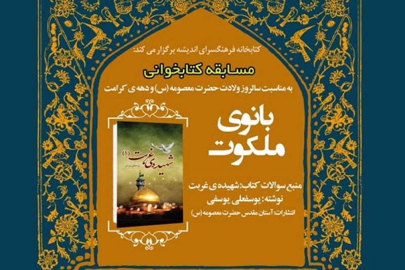 وی افزود: علاقهمندان به شرکت در مسابقه کتابخوانی «بانوی ملکوت»، از روز سهشنبه ۱۰ خرداد تا ۲۹ خرداد فرصت شرکت در این مسابقه کتابخوانی را دارند و میتوانند با مراجعه به پورتال فرهنگسرای اندیشه به آدرس andisheh.farhangsara.ir پس از دریافت فایل پیدیاف کتاب و سوالات مسابقه پاسخنامه خود را در قالب یک عدد ۹ رقمی به سامانه پیامکی فرهنگسرا به شماره ۲۰۰۰۱۸۳۷۷ ارسال کنند. به تعدادی از کسانی که به تمام سوالات پاسخ صحیح داده باشند جوایزی ارزنده اهدا خواهد شد.