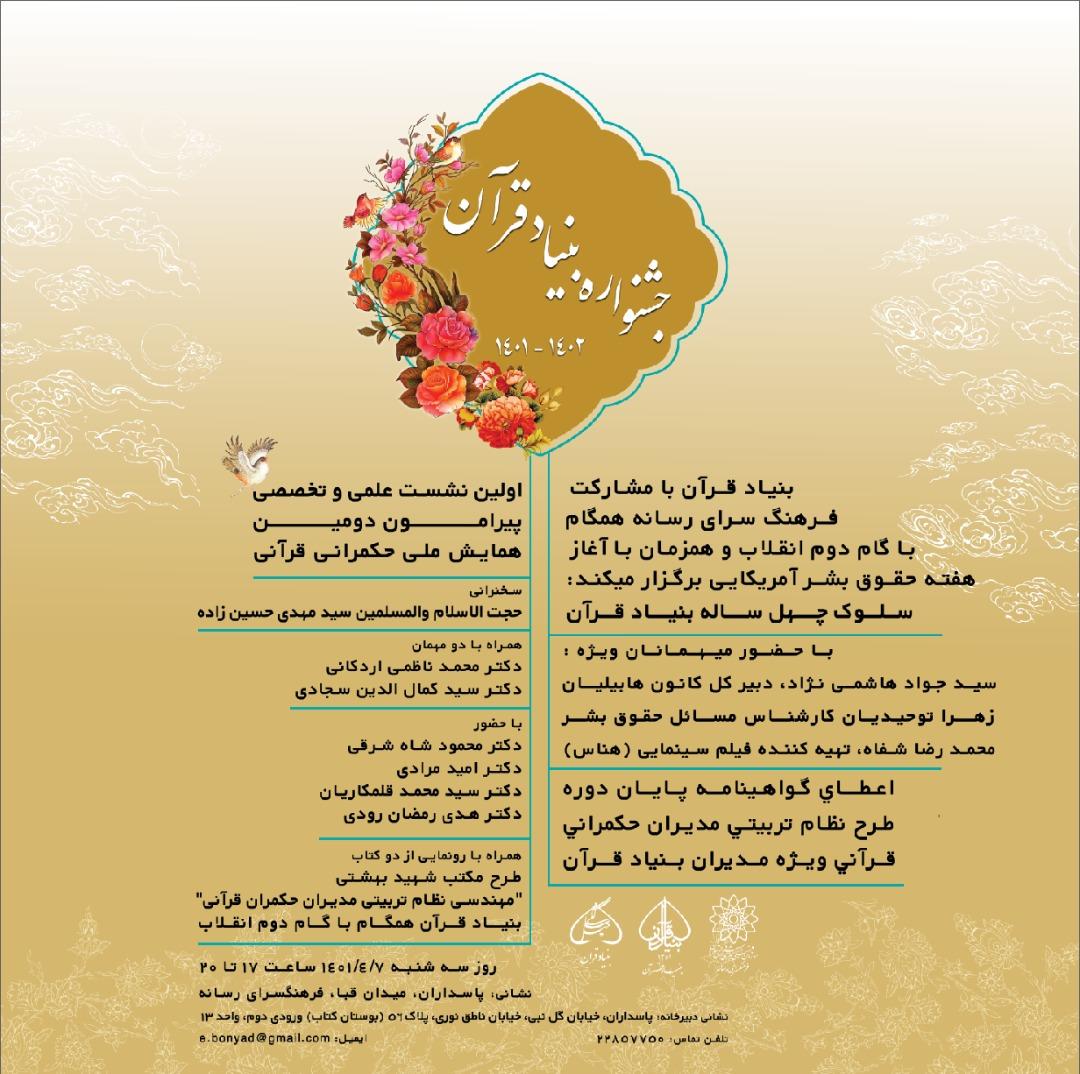 همایش «سلوک چهل ساله بنیاد قرآن» به همت بنیاد قرآن با مشارکت فرهنگسرای رسانه برگزار میشود.