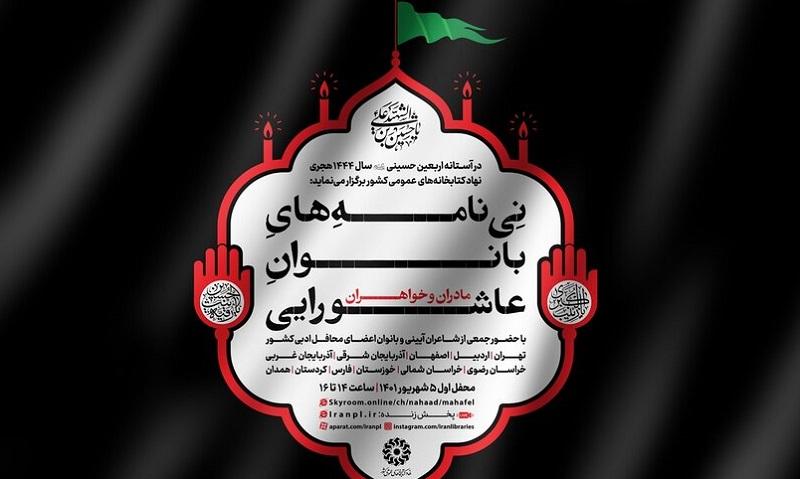 این مراسم در آستانه اربعین سال ۱۴۴۴ هجری با مشارکت جمعی از شاعران آیینی و بانوان اعضای محافل ادبی نهاد کتابخانههای عمومی کشور برپا است.