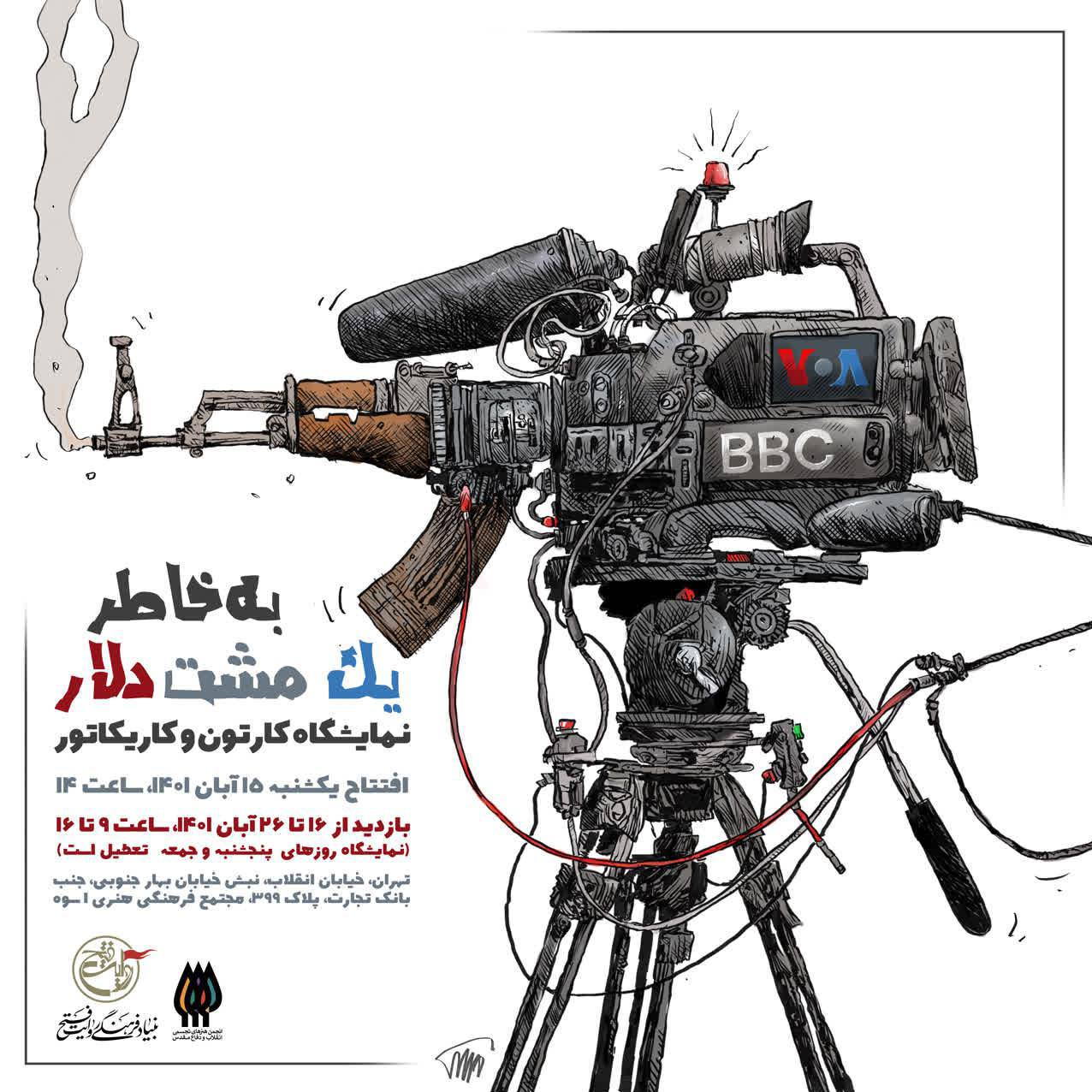 روابط عمومی بنیاد فرهنگی روایت فتح، نمایشگاه «به خاطر یکمشت دلار» روایتی هنرمندانه از تفرقهافکنیها و تجزیهطلبیها دشمنان این سرزمین در قالب کارتون و کاریکاتور است که به همت انجمن هنرهای تجسمی بنیاد فرهنگی روایت فتح در مجتمع فرهنگی و هنری اسوه از روز دوشنبه 16 آبان میزبان علاقهمندان و هنرمندان خواهد بود.