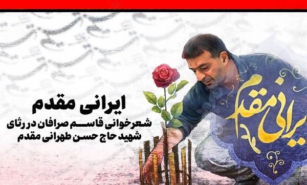 همزمان با سالروز شهادت پدر موشکی، قاسم صرافان در وصف رشادتها و فعالیتهای شهید طهرانی مقدم سروده جدید خود را با عنوان «ایرانی مقدم» خوانده است.