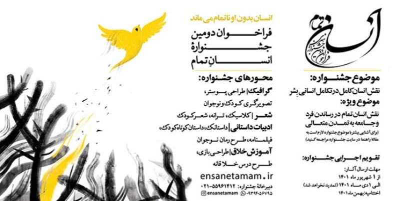 فراخوان دومین جشنواره انسان تمام با موضوع نقش انسان کامل در تکامل انسانی بشر و همچنین نقش انسان تمام در رساندن فرد و جامعه و تمدن متعالی منتشر شد. در این جشنواره نقش انسان کامل در تکامل انسانی بشر بررسی خواهد شد ضمن اینکه نقش انسان تمام در رساندن فرد و جامعه تمدن متعالی هم موضوع ویژه این جشنواره است.