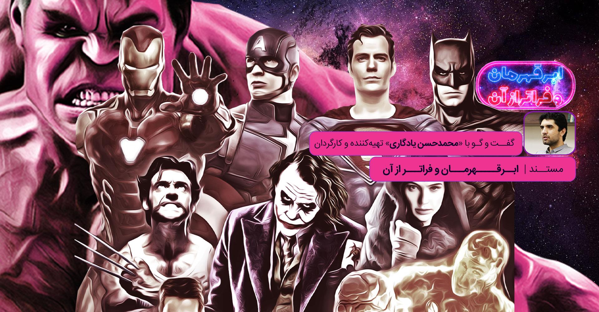 شناسنامهی شخصیتهایی خیالی که راه به خانههای مردم پیدا میکنند و البته تولدیافته از فضای زیست و فکر مردمان آمریکایی هستند. «محمدحسن یادگاری»؛ تهیهکننده و کارگردان مستند «ابرقهرمان و فراتر از آن»، پیرامون این ایدهی نهفته در زیرپوست اثرش، به خبرنگار موسسهی اندیشهی شهید آوینی گفت: از آن جا که من در حوزهی ارتباطات و رسانه، پژوهش میکنم و تحصیلاتم هم در این زمینه و در راستای فرهنگ عامه بوده است، خیلی علاقمند هستم که درحوزهی رسانه و سرگرمیسازی کار کنم و این بخش برایم مهم بوده است. ایدهی مستند «ابرقهرمان و فراتر از آن»، بخشی از آن دغدغه بوده است که در زمینهی فرهنگ رسانههای عامه پسند رفتارشناسی میکند.