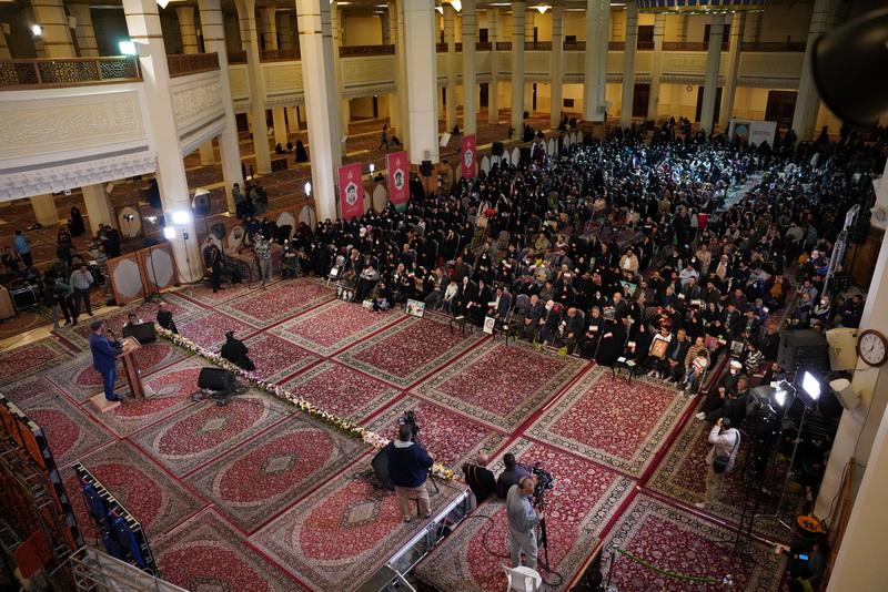 مادر شهید باصری را دیدم که با ویلچر وارد شد، شبستان دارد شلوغ میشود مردم عادی روی زمین کنار خانواده شهدا نشسته اند و حرف انتظامات را با تذکر های مدام که اینجا جای خانواده شهداست را نمیشنوند .