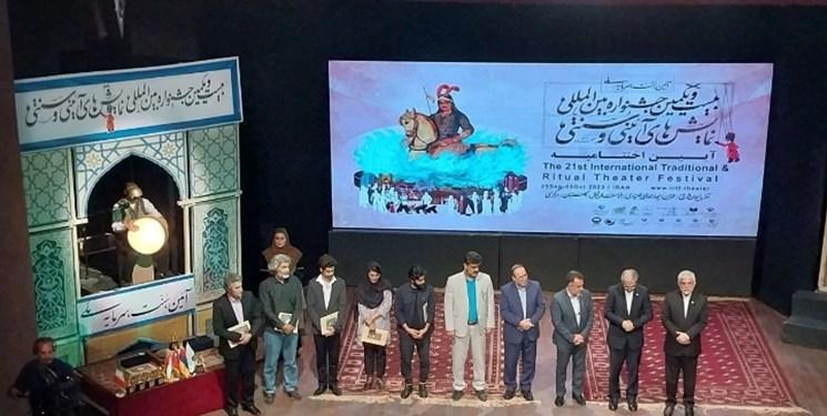 آئین پایانی بخشهای مختلف بیست و یکمین جشنواره بینالمللی نمایشهای آیینی و سنتی شامگاه سه شنبه یازدهم مهر با حضور محمدمهدی اسماعیلی وزیرفرهنگ و ارشاد اسلامی، علیمحمد زنگانه استاندار گلستان، محمود سالاری معاون امور هنری وزیر فرهنگ و ارشاد اسلامی، کاظم نظری مدیر کل هنرهای نمایشی وزارت فرهنگ و ارشاد اسلامی، اسرافیل فرجاللهی مدیرعامل انجمن هنرهای نمایشی ایران، محمد رعیت مدیرکل فرهنگ و ارشاد اسلامی استان گلستان، غلامرضا منتظری نماینده گرگان و آققلا در مجلس شورای اسلامی، ایمان شمسایی مدیرکل مطبوعات داخلی وزارت فرهنگ و ارشاد اسلامی در تالار فخرالدین اسعدگرگانی شهر گرگان برگزار شد.