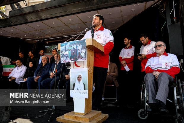 رئیس جمعیت هلالاحمر، در این مراسم گفت: محاصره و حمله مراکز درمانی، از اهم نقض حقوق بشر دوستانه است.