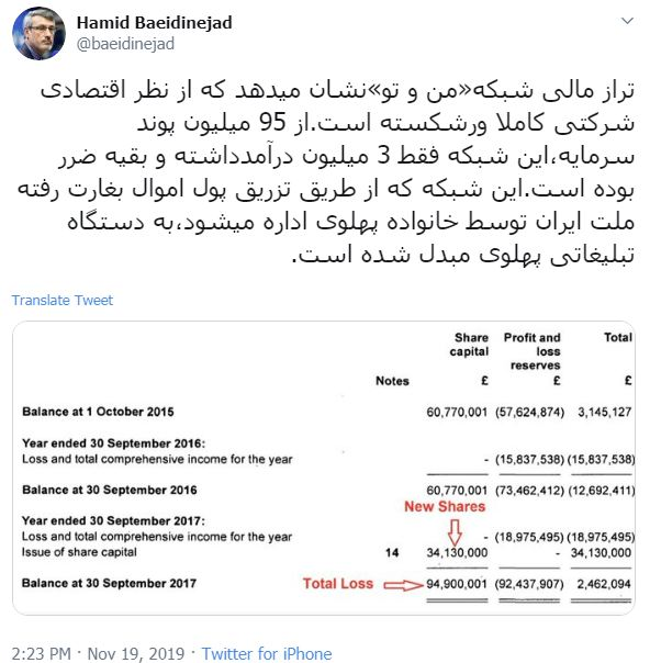اما روایت حمید بعیدینژاد سفیر سابق ایران در لندن درباره پشت پرده حمایت مالی از شبکه «من و تو» نیز خواندنی است.