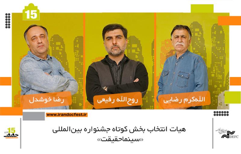 به گزارش ارتباطات و اطلاع رسانی مرکز گسترش سینمای مستند و تجربی، اللهکرم رضایی، رضا خوشدلراد و روحالله رفیعی به عنوان هیات انتخاب بخش «کوتاه» مسابقه ملی پانزدهمین جشنواره «سینماحقیقت» به انتخاب آثار پرداختند.