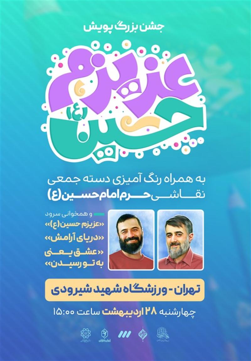 این مراسم با رنگ آمیزی دسته جمعی نقاشی حرم امام حسین (علیهالسلام) و همخوانی سرود «عزیزم حسین (علیهالسلام)»، «دریای آرامش» و «عشق یعنی به تو رسیدن» همراه خواهد بود.