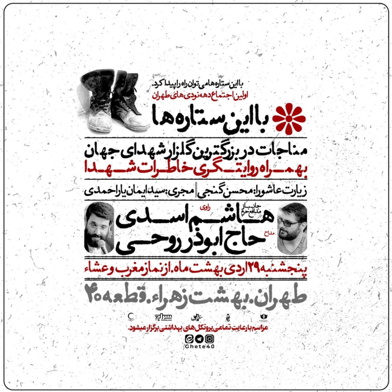 در هفته چهل و هفتم این برنامه، «هاشم اسدی»؛ اولین جانباز مدافع حرم به روایتگری خاطرات شهدا در نبرد با سربازان آمریکایی در شهر نجف میپردازد و «ابوذر روحی»، سرود «سلام فرمانده» را با حضور دهه نودیها در محضر شهیدان گمنام همخوانی میکند. این برنامه هر هفته ویژه عموم هموطنان، از نماز مغرب و عشاء به مدت ۲ ساعت برگزار میشود و طبق هماهنگیهای بهعمل آمده با سازمان بهشت زهرا، درب اصلی گلزار «باب الشهداء» تا اذان صبح جمعه باز است.