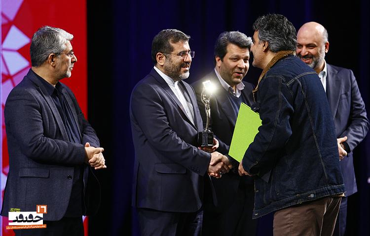 محمد خزاعی، رئیس سازمان سینمایی نیز برای اهدای جایزه این بخش به روی صحنه آمد.