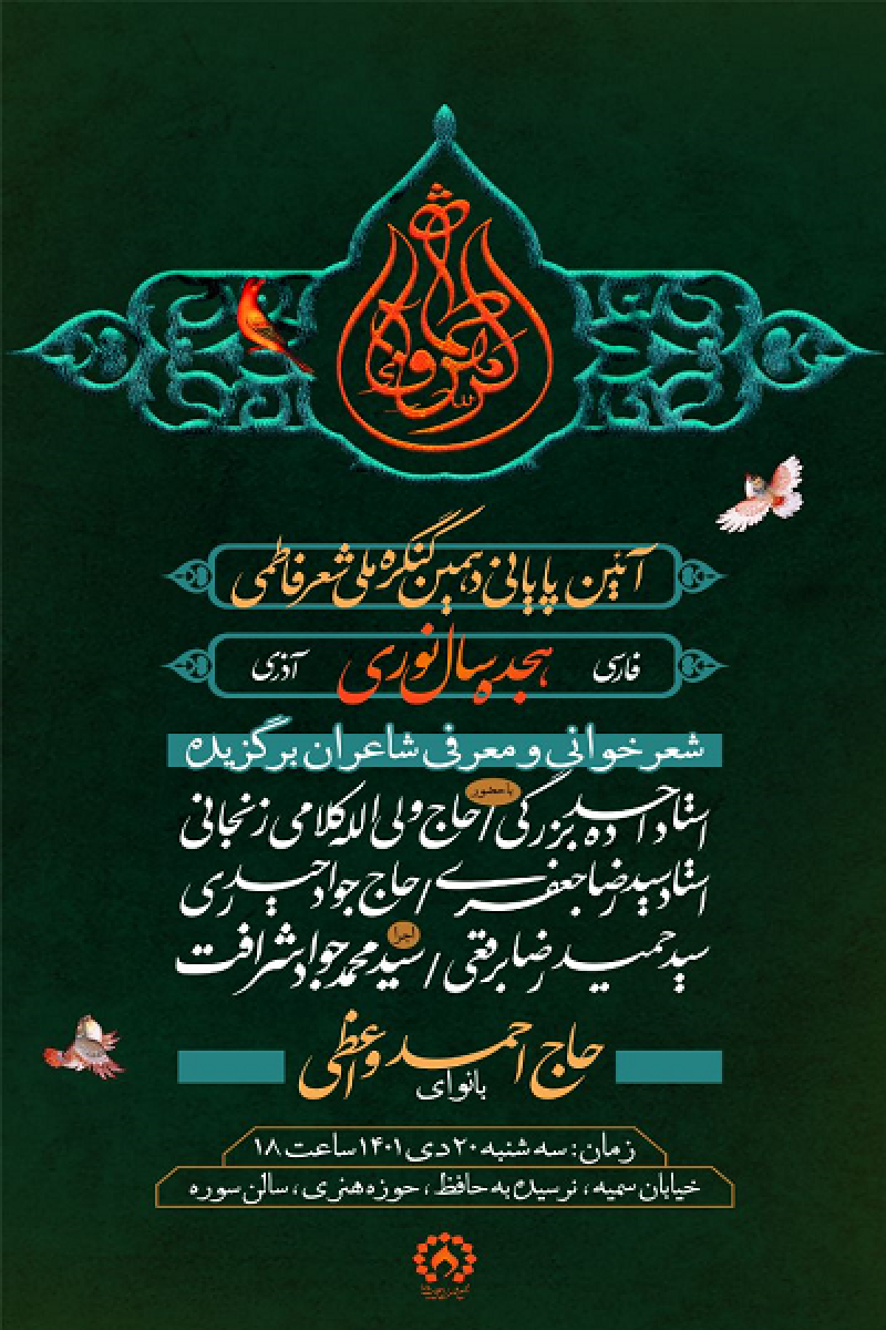 مجمع شاعران اهل بیت (ع) فراخوان دهمین کنگره سراسری شعر فاطمی «هجده سال نوری» را در بخشهای شعر فارسی (کلاسیک و آزاد)، شعر عربی (فصیح و محلی) و شعر آذری آبان اعلام کرد تا شاعران آثار خود را در موضوعات این کنگره ارسال کنند.