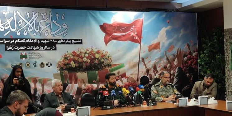 وی افزود: پیکر ۱۱۰ شهید گمنام در تهران پایتخت نظام مقدس جمهوری اسلامی ایران و ۱۷۰ شهید در ۳۰ استان دیگر تشییع خواهد شد و طبق تقسیمات صورت گرفته، مراسمات مختلفی هم برگزار خواهد شد. این مراسم ۲ برنامه ویژه دارد که برنامه اول وداع با شهدا در شب شهادت حضرت زهرا(س) در همه استانها برگزار خواهد شد.