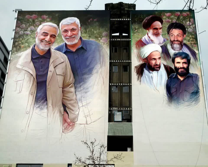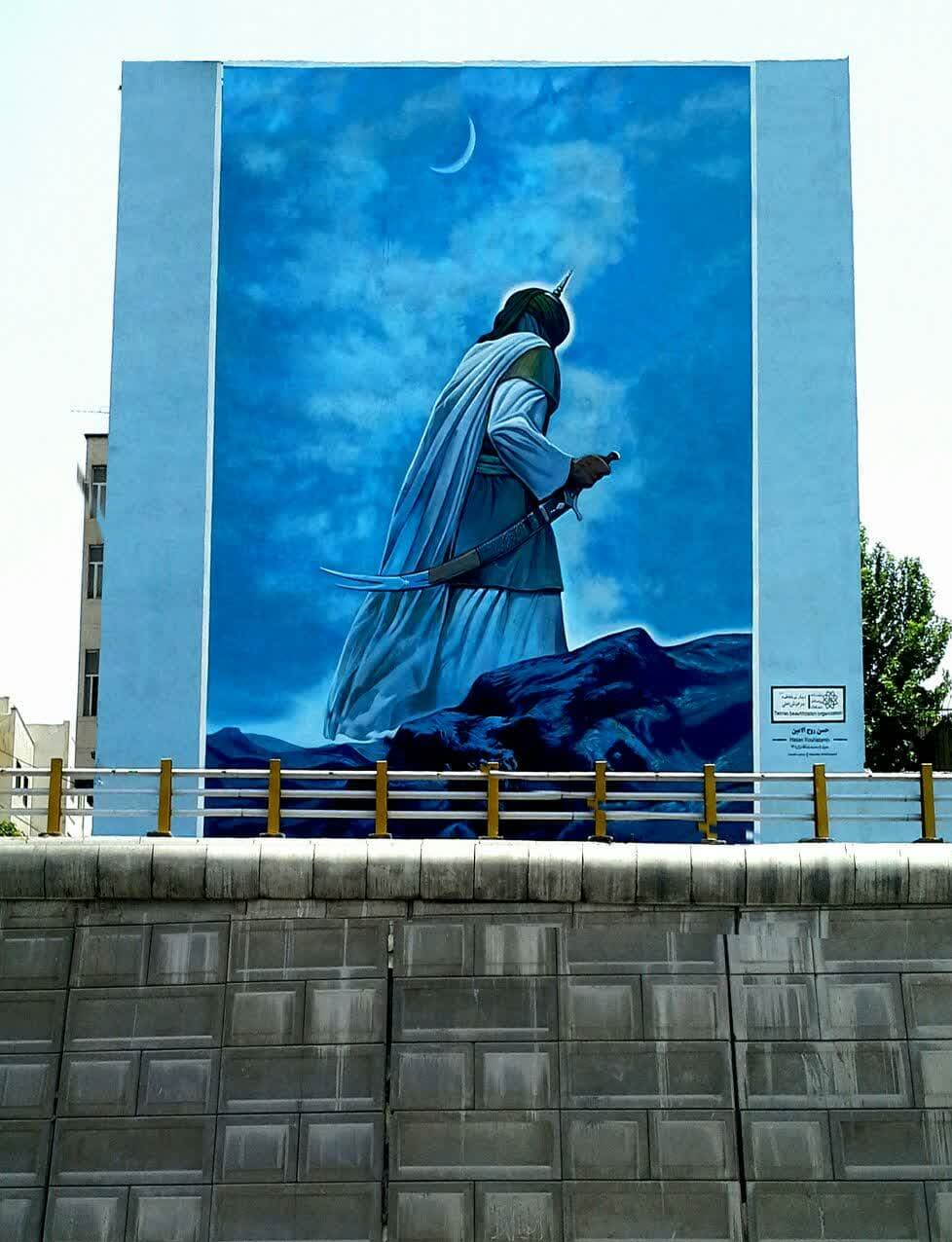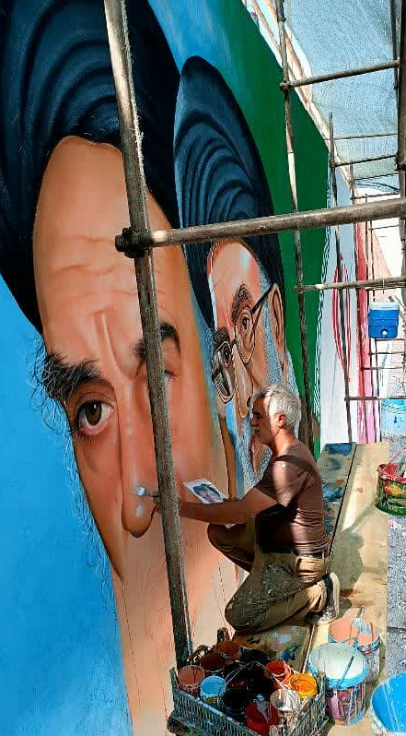 طرحی از امام خمینی(ره)، شهید بهشتی، سردار سلیمانی، جمال جعفر محمد آل ابراهیم معروف به ابومهدی المهندس و ... در تقاطع خیابان سپهبد قرنی و خیابان سمیه در ابعاد ۲۴۰ متر مربع بر دیوار قوه قضائیه سال گذشته به مناسبت سالگرد شهید سلیمانی رونمایی شد. این نقاش عقیده دارد نقاشی دیواری، تنها رسانهای است که به تمام زبانهای دنیا مسلط است.